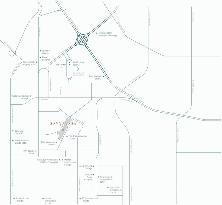 Savyavasa's prime location offers an exclusive address in leafy Dharmawangsa close to the city's central business district, ensuring unparalleled convenience for residents. Easy access to leading healthcare and educational institutions, premier shopping malls, and top dining destinations further enhances the appeal of Savyavasa. Experience a holistic living environment that ensures a well-rounded and enriching way of life, making Savyavasa the ultimate choice for discerning residents seeking sophistication and convenience in the heart of Jakarta.